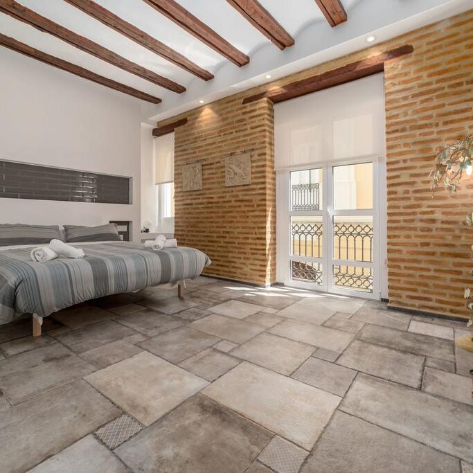 Precioso piso situado en el casco antiguo de Valencia a escasos metros de la Plaza de la Virgen y las Torres de Serranos. Este bonito apartamento está decorado con buen gusto y es ideal para una pareja o una familia. Cuenta con un dormitorio con cama matrimonial y un cómodo sofá cama doble en la sala, que dispone de puertas corredizas para brindar privacidad a ese espacio. La cocina, abierta, está completamente equipada para que su estancia sea lo más acogedora posible. Además, tiene una gran terraza interior con mobiliario para pasar un rato de relax. Dispone de conexión wifi gratuita y aire acondicionado. Justo en el edificio de enfrente hay una plaza de parking – con un coste de 18€ por día y siempre bajo disponibilidad – No dudes más y déjate llevar por el encanto del casco antiguo de Valencia!