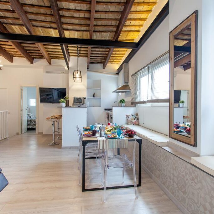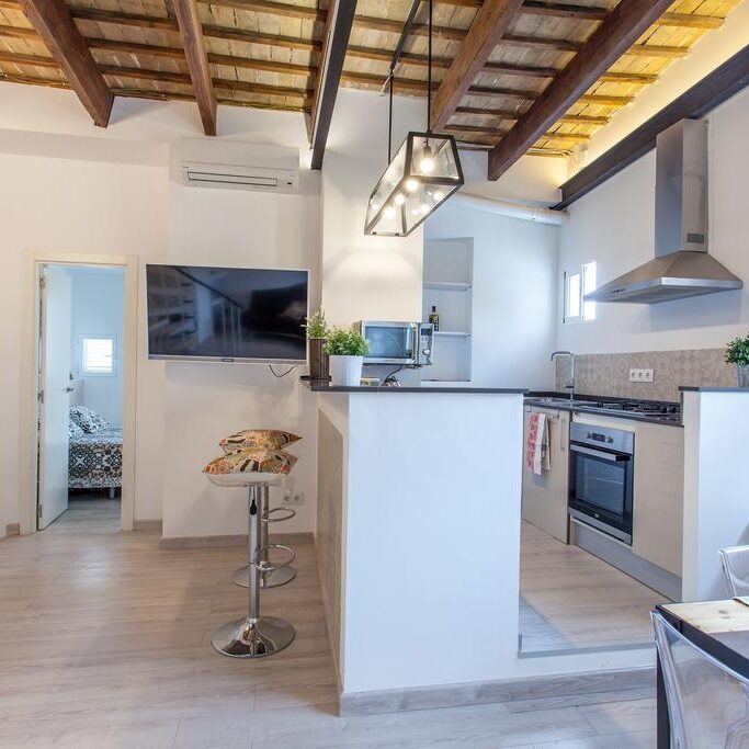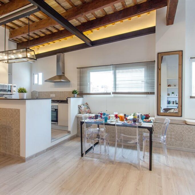Amplio dúplex ubicado en el famoso barrio del Cabañal, a pocos minutos de la Playa de la Malvarrosa y de la parada de metro Maritim-Serreria. Este hermoso apartamento es ideal para un grupo de amigos o una familia debido a su gran tamaño. Dispone de tres habitaciones, dos baños completos, cocina equipada, salón comedor, conexión wifi gratuita y aire acondicionado tanto en la sala como en todos los dormitorios. Además, cuenta con una fabulosa terraza privada donde relajarse después de un día de turismo por Valencia. La elección adecuada si deseas pasar una estancia muy agradable con tus amigos o familia y muy cerca de la playa!