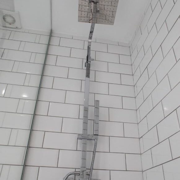Un baño completo con ducha